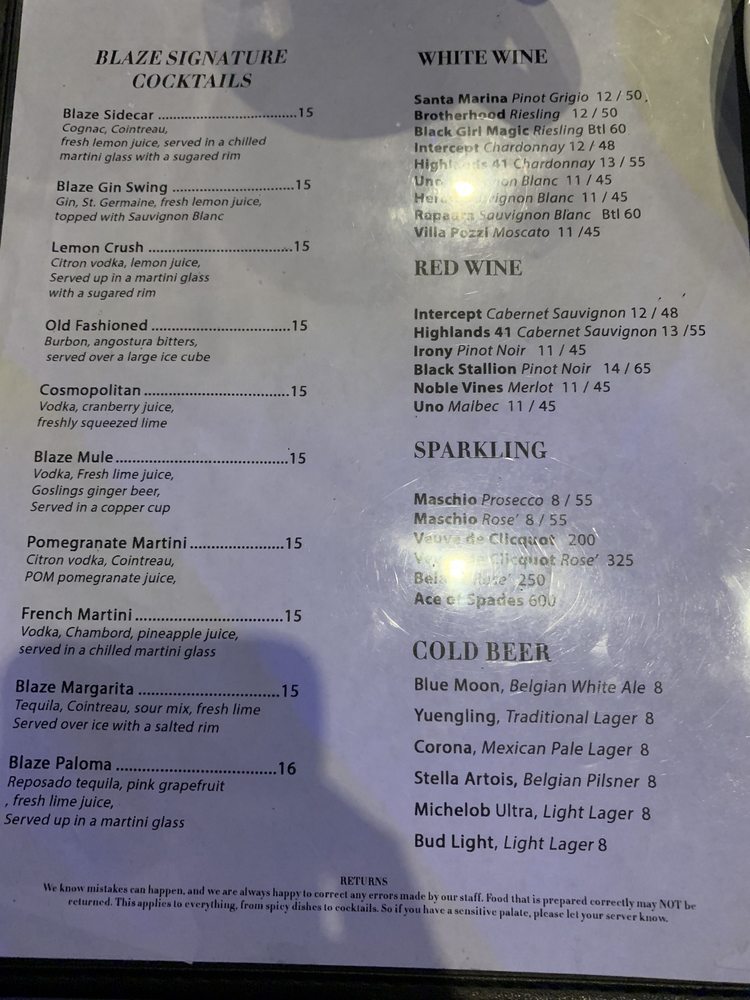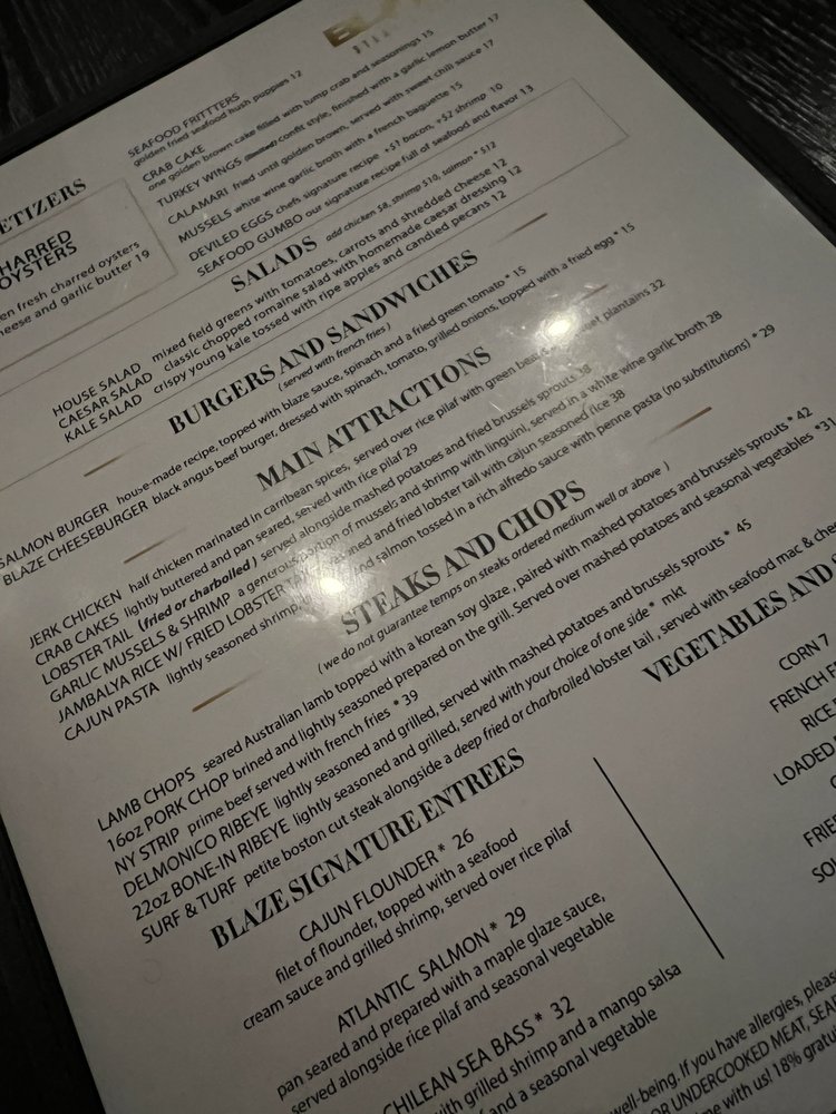 Don’t forget to indulge in a slice of their Red Velvet Cheesecake to round off your meal. The ambiance is lively, especially during events like karaoke nights, where the music and energy truly enhance the dining experience. With options for outdoor seating and a full bar, Blaze promises a casual and enjoyable night out, perfect for groups and celebrations. Experience why guests rave about the excellent service and memorable flavors at Blaze Steak and Seafood!